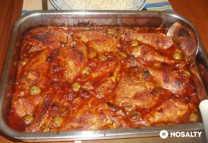 A húsokat egy nagyobb magas falú tepsibe helyezzük, ráöntjük a paradicsomos ragut, és sütőben hőlégkeveréssel 180 fokon kb. 60-80 perc alatt készre sütjük. Félidőben megforgatjuk a csirkedarabokat. A végére a paradicsomos szósz besűrűsödik, és nagyon finom. Olasz tésztafélékkel, esetleg rizzsel tálaljuk.