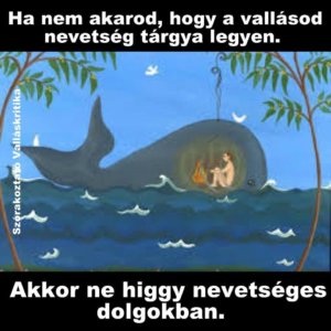 Jah, majd el felejtettem… Délelőtt elmentünk anyával a gyógyszertárba is. Ki kellett váltanom a pulzusszabályozós gyógyszeremet. Aztán olyan mogorva nő volt a pult túl oldalán, hogy legszívesebben kifordultam volna a gyógyszertárból. Mondtam is anyának, hogy erre a nőre mosolyoghattam olyan barátságosan, ahogy csak akartam, egy arcizma nem rándult. Aztán mentünk tovább és belefutottunk anya jehovás ismerősébe. Anno mondtam anyának, hogy szerezzen nekem egy Bibliát. El akartam olvasni. Nem vallási okból, csupán úgy gondoltam, hogy hozzá tartozik az alap műveltséghez. De pár oldal után azt mondtam, hogy oké, ez nem nekem való. Szóval, az a jehovás nő nagy lelkesen bemutatkozott nekem, akkora műmosollyal, hogy azt tanítani kellene… Kérdezte, hogy olvasom e minden nap a Bibliát. Gondolkodás nélkül rávágtam, hogy igen. Nem vagyok büszke rá, hogy hazudtam, de soha nem szabadultam volna meg tőle, ha még őszinte is vagyok. Rám is sózott két kis könyvet. Aztán ráadásul kérdezgette, hogy miért is lakok újra anyuméknál. Mondtam, hogy a volt párom úgy látta, hogy inkább mással folytatja az életét. Mondta, hogy igen, ez sajnos jellemző mostanság, de higgyem el, hogy alázatos, jó ember vagyok és Jehova valami sokkal jobbat tartogat a számomra. A kép, amit ide beszúrtam még face-en osztottam meg tavaly, még jó, hogy nem vagyunk ismerősök. Nem szoktam a valláson gúnyolódni, mert annyira sem érdekel, hogy ki, miben hisz, hogy erre energiát pazaroljak, de nagy ritkán azért kibújik a kis ördög belőlem is.